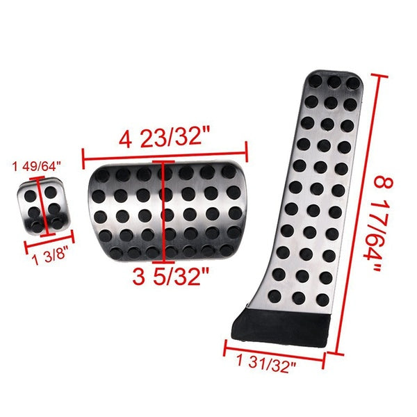1,Bring Class to Your Car - This high end pedal cover will make your car looks more sporty and exclusive, just like the AMG 2,No Drill Required - Customize for Mercedes Benz, just need slip the cover on the original one, only take a few minute to install 3,Non-Slip Design - The raised rubber dots will offer more grip for your foot, 4,Widely Compatibility - Fits Mercedes Benz C E S GLK SLS SLK CLS SL class, details compatibility informations please refer to "Product Description" 5,Super Durable - Made of stainless steel and grade silicone, tough and non-corrosive even in harsh environment This foot pedal cover is customized for Mercedes Benz, with good quality, sporty looking and easy to replace. Color: Chrome + Black Material: High quality stainless steel + rubber Gas Pedal Cover: 8 17/64" x 1 31/32" (21cm x 5cm) Brake Pedal Cover: 3 5/32" x 4 23/32" (8cm x 12cm) Rear Brake Pedal Cover: 1 49/64" x 1 3/8" (4.5cm x 3.5cm) Compatibility: C Class W204 2007-2014 (C180 C200 C220 C230 C250 C280 C300 C320 C350 C63) E Class W212 2009-2014 (E200 E220 E250 E300 E350 E400 E500 E550 E63) S Class W222 2014 (S320 S400 S500 S600) GLK Class X204 2008-2014 (GLK220 GLK280 GLK300 GLK320 GLK350) SLK Class R172 2011-2014 (SLK200 SLK250 SLK350 SLK55) CLS Class W218 2010-2014 (CLS320 CLS350 CLS500 CLS550 CLS55 CLS63) SL Class R231 2012-2014 (SL350 SL500 SL63 SL65) NOTE: You may need to remove the original pedal cover before install the new one. Package include: 1 x Gas Pedal Cover 1 x Brake Pedal Cover 1 x Rear Brake Pedal Cover